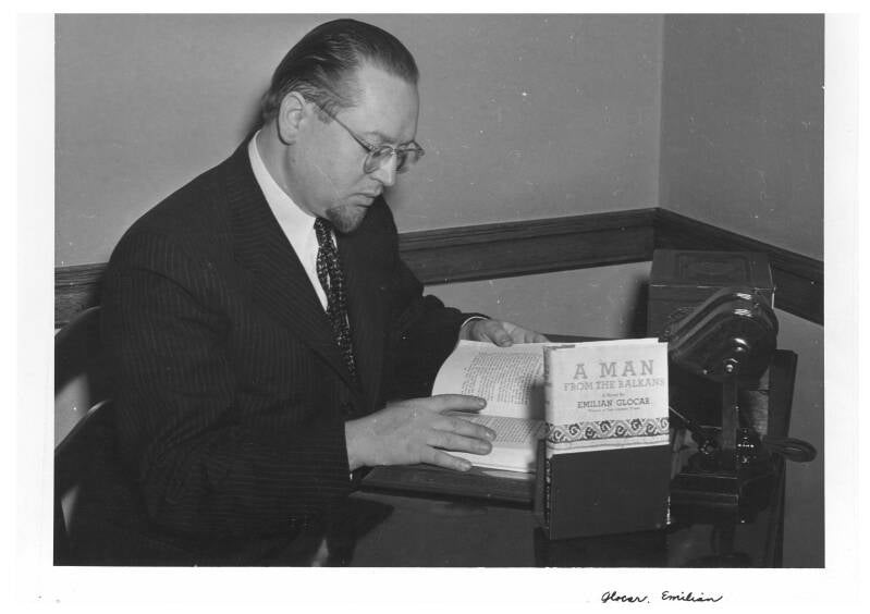 In 1942 “A man from the Balkans” was published in the United States. It was a novel about first generation immigrants to the US from Slavic countries and their hardships in assimilating and gaining citizenship. It also espoused a sense of optimism and hope for success in the new country. Glocar also contributed to the 1945 anthology of short stories about WWII called "Youth Replies." His story “Children of the Storm”, describes the massacre of an Orthodox Church, the townspeople including children, and the priest by the German invaders.